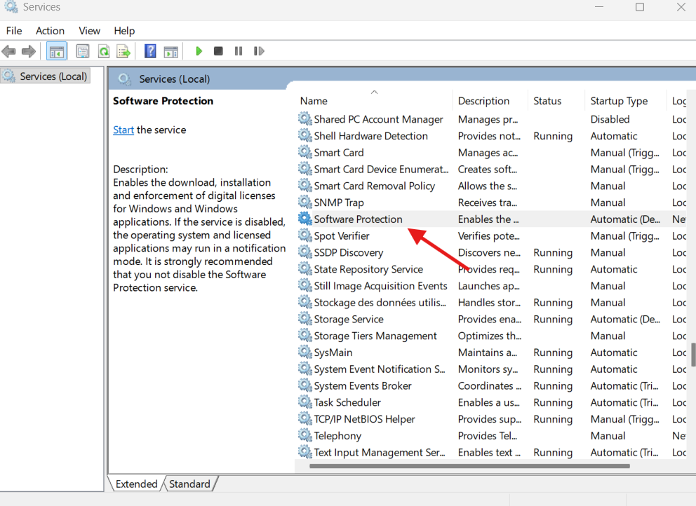 - Scroll to Software Protection → Right-click → Start or Restart.
